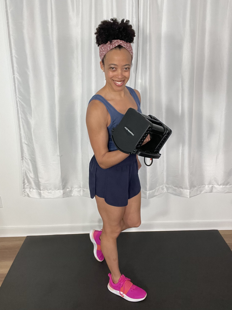 This routine was my first workout “back in the studio” to kick off a long block of filming, and I was so excited to get started with such a monster of a workout! So excited that midway through the workout (during the water break) I somehow missed my mouth and poured a bunch of water on myself. The frenzy that ensued afterwards to make sure that the mic survived was something else.