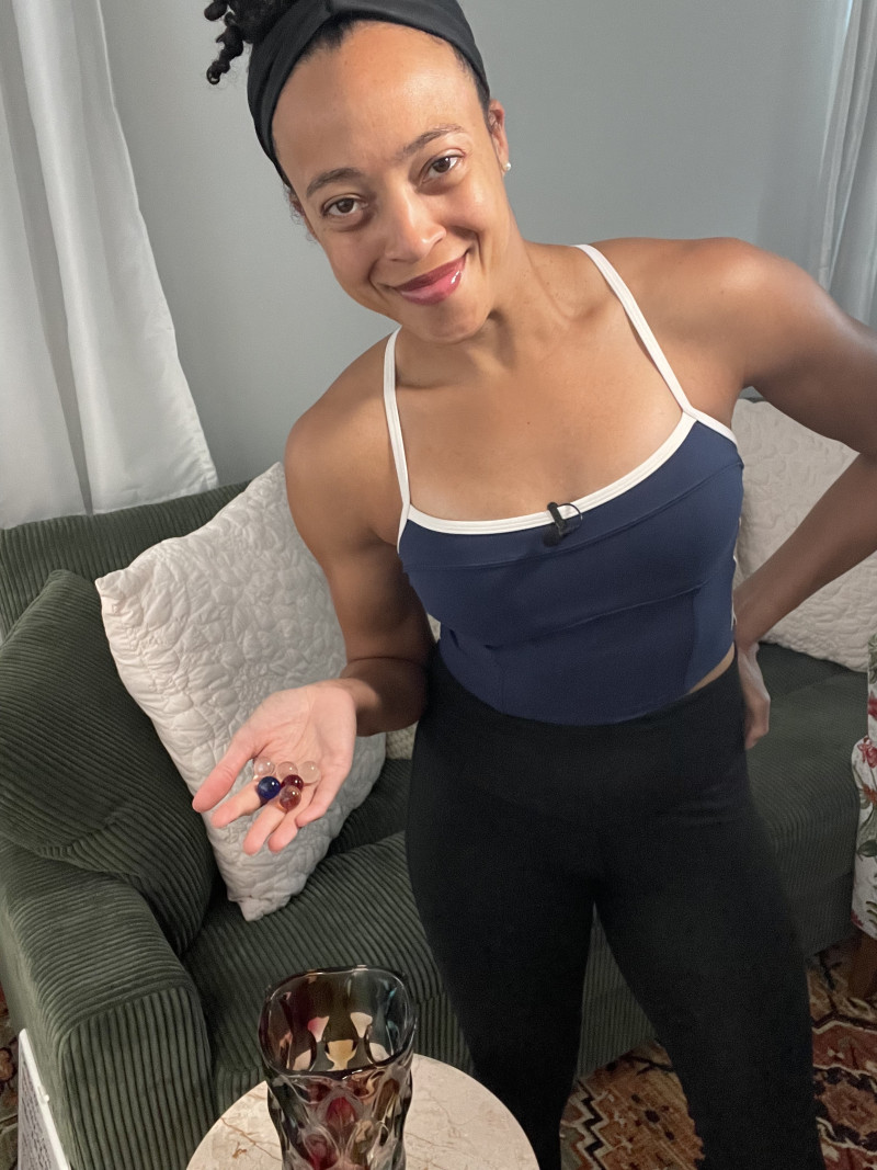 If you’re feeling overwhelmed from data overload, take a break from tracking your metrics and track your consistency. One of my favorite ways to do this is to place a marble in a jar for every time I engage in intentional movement. This movement could be anything from strolling around the neighborhood with the pugs, stretching while watching tv, or running six miles – it all counts, it all receives a marble! I collect my marbles for as long or short a time as I want to and then return to tracking some metrics once my brain feels decluttered from all the pressure to track all the metrics all the time. It’s fun and I love looking at the many marbles I’ve collected knowing that they each represent a time when I chose to take care of my body (and mind).