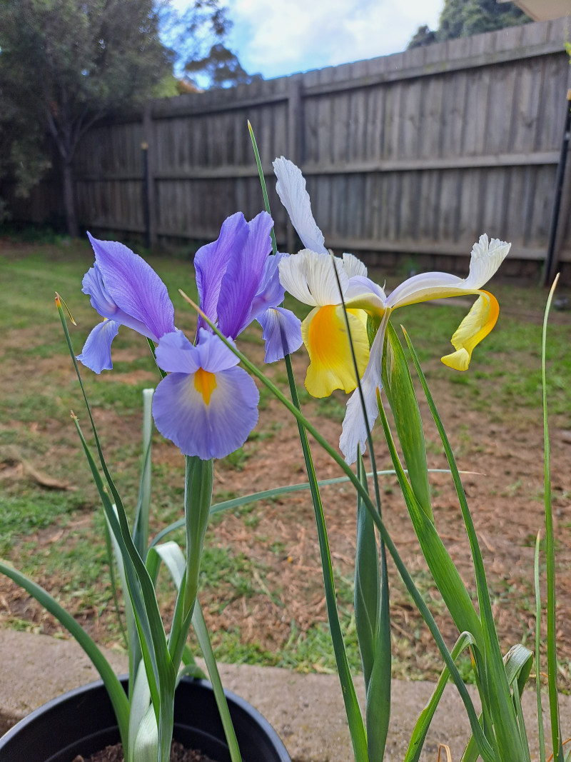 Did you know there is a relationship between your gut bugs and ability to sleep? I didn't until I saw a BBC article on it last week. Google says I should "eat more mindfully" and that my gut will feel better if I get more sleep. Thank you for that helpful advice, internet. I think I want a gut bug transplant, and I've stopped caring if the delivery method is gross. Gimme them healthy microbiota. I finally got a really solid night's sleep last night, and my goodness do I feel better. Pip, on the other hand, is upset that she could not stay out playing all night. She had to come inside and go to bed too. Today she expressed her disapproval by knocking a flower pot off a window sill and smashing it, and then when I put her outside for a time out by standing on her hind legs to attack my iris. The one on the right used to have a few more petals.