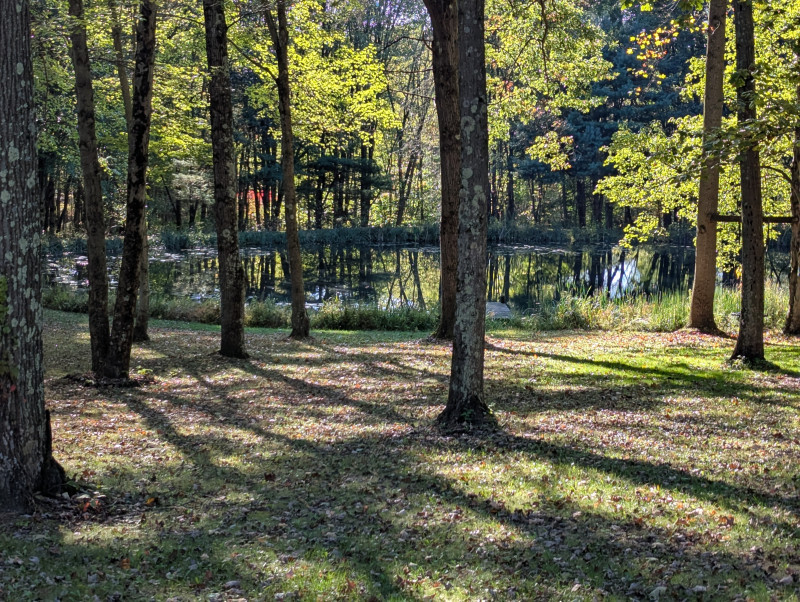 Picture. That one red tree you hiding in behind our pond. It's so vibrant compared to the rest of the leaves that just died and turned brown due to lack of rain.