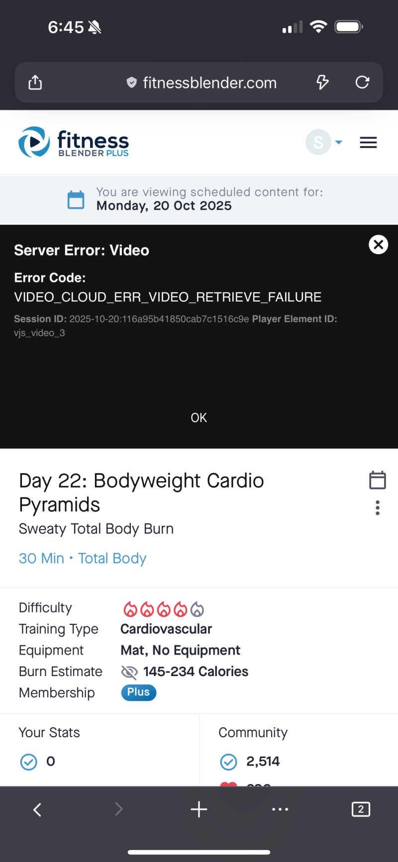 I am getting a video error on my iPhone on all browsers and my MacBook Pro laptop. I’ve tried Firefox, Google Chrome and Safari. Attaching an image of the error