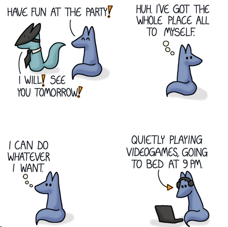 Not much else to share. The meme is an accurate representation of how my evenings go when Adrian goes out by himself, just replace gaming with reading. For those of you who don't live by yourselves, do you do anything exciting when you have the house to yourselves?