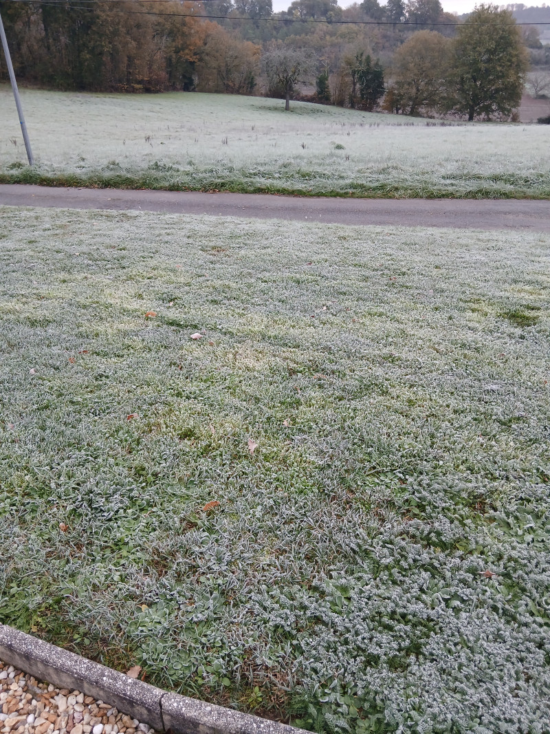Mr Frost has arrived in Combiers as picture shows and oh boy do we feel the difference. Let me tell you, sticking out my toe from under the duvet this morning... brrrr. My pellet will be on today for sure!!