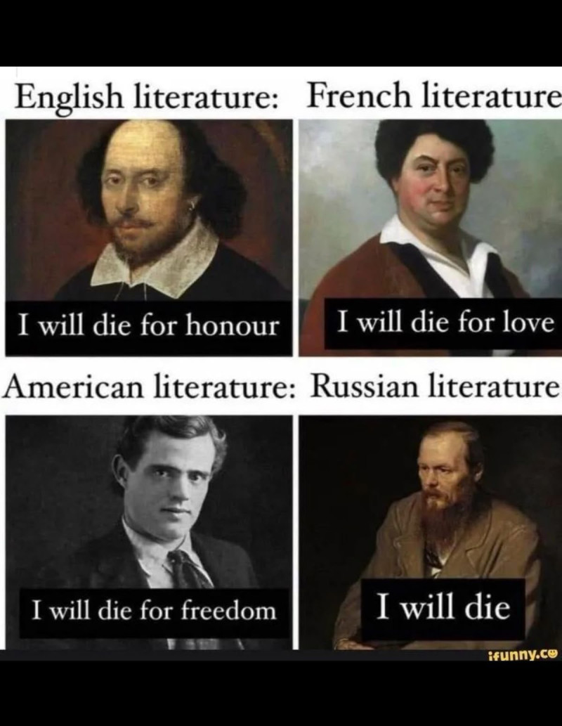 There’s been lots of talk on the thread about classics from around the world and the meme made me laugh so wanted to share. Anyone else started a classic novel? Or something else interesting? What are your thoughts on what you’re currently reading? I’m currently rereading Louise Penny’s novels as she recently released a new one which I should get to in December. I enjoy her novels as they are based in Quebec and have a fun cast of characters. Once I’m done with her series, I’ll switch into fantasy mode which is what I tend to read in the winter.