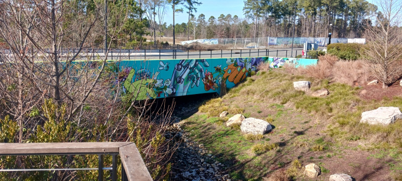 We found a new route in an area where we have walked and even better there is a new coffee in the middle of the walk. Along the way we walked over a bridge that has a colorful mural.