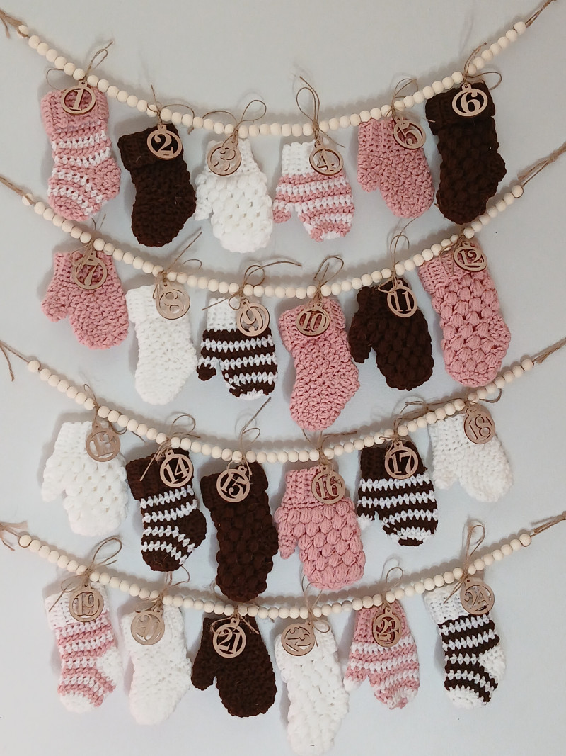 Guess I've got most covered, only thing left is item 3 of Christmas crochet. It's my Advent calendar, the crochet was easy but I've had a much harder time thinking how I was going to display it and when I finally had an idea those beads took forever to arrive. And while it's simple I actually quite like how it turned out.