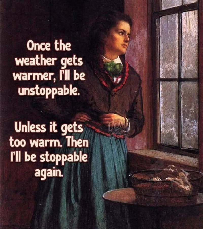 Hope you’re doing ok and finding some rest this weekend. What have you been up to? Handily slaying workouts and tasks? Lying in bed under 15 blankets reading? Trying to keep cool? Like the meme, our weather has been somewhat limiting (i.e., wicked cold and windy). And my body HATES this weather, my muscles are so tight it feels like my bones are going to rip out of their joint sockets. Ok winter, enough, we get it, you’re cold!