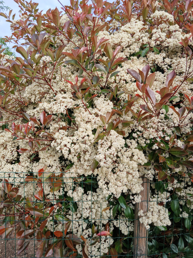 Pic: The Viburnum in the chicken pen has gone wild again. In the comment a close of up of the tiny flowers.